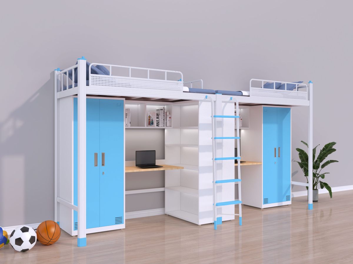 員工宿舍床的安全性也是非常重要的。在選購床時,要檢查床架是否有尖銳的棱角,床梯是否結實,以防員工在使用過程中發生意外。高華家具宿舍床卡扣式結構,重力下壓越睡越穩,床體承重500kg,穩固靜音。