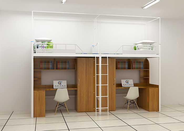 廣東高華家具宿舍公寓床廠家的職工公寓床-GH-G-099款式新穎,功能實用,采用環保0甲醛烤漆,無論悶熱潮濕都恍然如新。 工藝設計上,采用先進的卡口式連接,這種連接的優點在于承重性強,穩固性好,上下床時非常平穩,不易搖晃,安全舒適,整張床可承重500公斤,經久耐用且十年質保,可以適應各類宿舍。